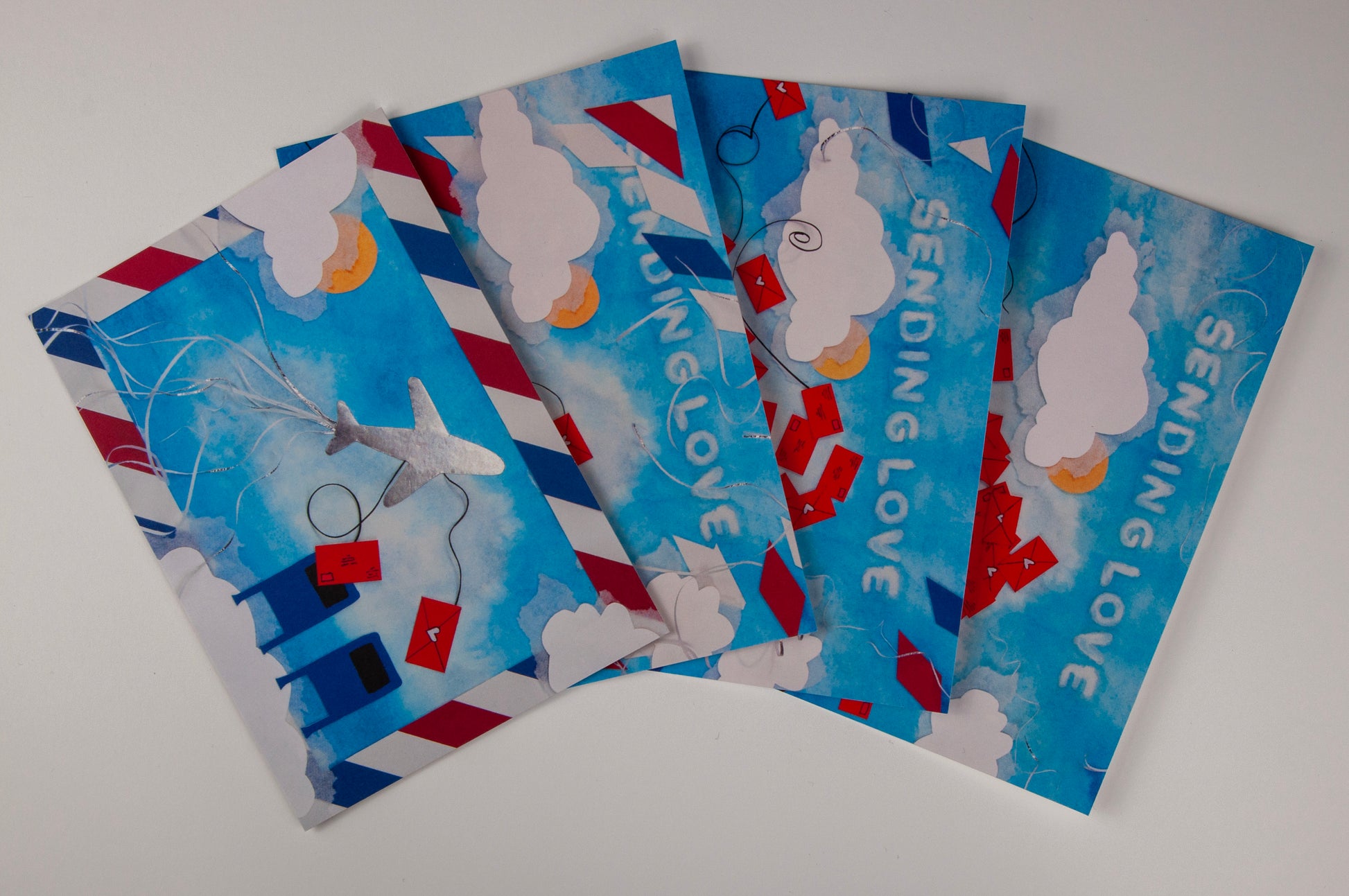 An original concept, a Love Story™ is a collection of cards crafted to be sent in sequence to someone special. In a quartet of flat note cards, The Original Love Story reveals the voyage of a flock of love notes to a mailbox. Love Stories elevate the simple greeting card to an extended experience of love and connection.